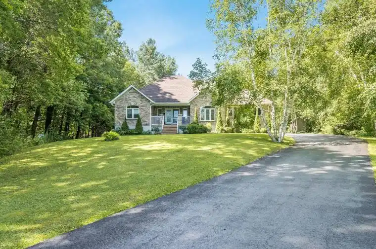 Top 5 Reasons You Will Love This Home: 1) Nestled in the sought-after Copeland Creek Estates, this exceptional property sits on 1.5-acres surrounded by mature trees, delivering a secluded paradise ready to be enjoyed 2) Step inside to discover an updated kitchen with ample storage and modern finishes while the stunning primary ensuite features a freestanding tub and a sleek glass shower, presenting your own personal retreat 3) The fully finished basement adds even more living space, complete with a cozy gas fireplace, a spacious recreation room, a bedroom, an office, and a dedicated hobby area, ideal for growing families or guests 4) Outside, unwind on the composite deck with elegant glass railings, soak in the hot tub, or relax under the gazebo, all set within a private, tree-lined yard designed for peaceful outdoor living 5) Located in a prestigious estate community with scenic walking trails and just minutes from in-town amenities, sandy beaches, and Georgian Bay. 1,873 above grade sq.ft. plus a finished basement.