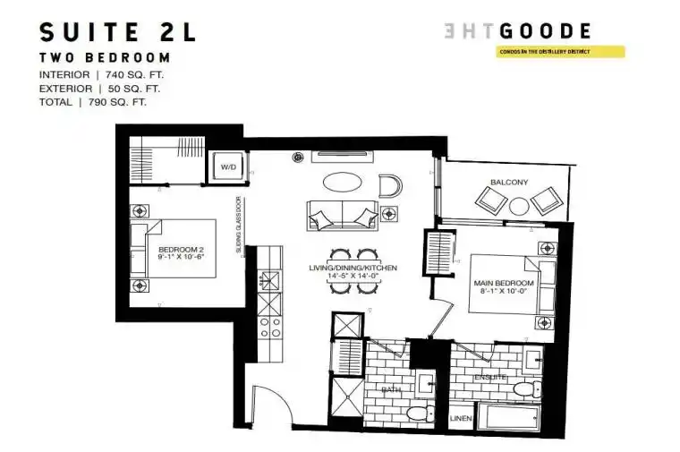Enjoy modern city living at Goode, a brand-new condominium designed for comfort, style, and convenience. This suite features 9-ft ceilings, floor-to-ceiling windows, and laminate flooring throughout. Both bedrooms offer walkouts to the open balcony with northern exposure, showcasing iconic views of the Distillery District. The primary bedroom includes a walk-in closet, while the second bedroom has a private 4-piece ensuite, perfect for guests or family. The open-concept kitchen flows seamlessly into the living and dining areas, creating an inviting space for everyday living or entertaining. Residents enjoy resort-style amenities, including a lobby lounge with fireplace, bike repair station, pet spa, concierge, outdoor terrace, co-working and quiet lounge areas, sun deck, party room, gym, yoga studio, BBQ area, and outdoor swimming pool. Just steps from the cobblestone charm of the Distillery District, with boutique shops, acclaimed restaurants, art galleries, and year-round cultural events, and minutes to the TTC streetcar, Union Station, DVP, and Gardiner Expressway, this condo offers the ideal combination of luxury, lifestyle, and urban convenience.