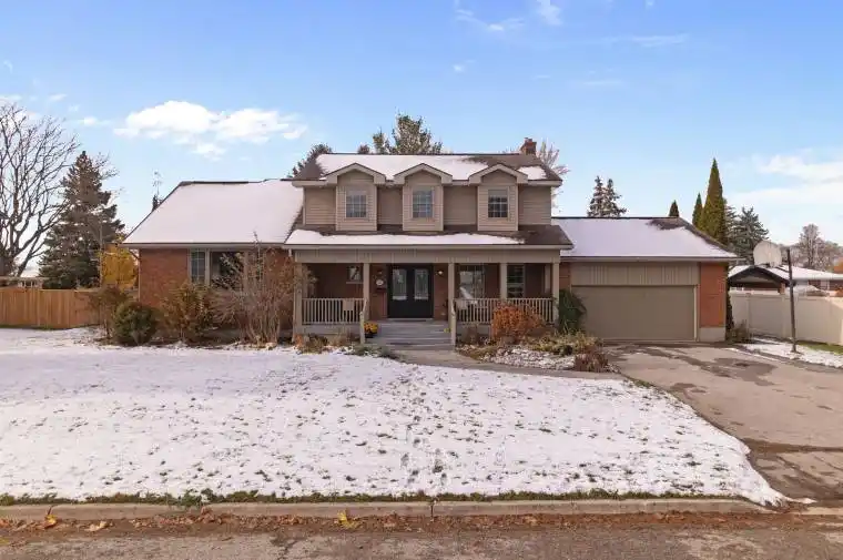 Welcome to 257 Eastern Avenue, a spacious family home in one of Exeter’s most desirable, quiet neighbourhoods. From the charming front porch and classic curb appeal to the thoughtfully designed interior, this home invites you in from the moment you arrive. The main floor features spacious living areas, including a sunny front living room, as well as a dining room with high ceilings, decorative moulding, and a picturesque window bench with storage. The kitchen has plenty of storage and workspace, with a large centre island, and direct access to the backyard, with a new BBQ landing right outside. Additionally you’ll find a cozy family room with a beautiful fireplace. Completing the main floor is a convenient laundry room, large front entryway with storage, and 2 piece bathroom. Upstairs, you’ll find four generous bedrooms, including a comfortable primary suite and three additional rooms perfect for kids, guests, or a home office. With four bathrooms in total, morning routines are a breeze. The fully finished basement extends your living space even further with room for a play area, media room, games space, or home gym, and includes a brand new 2 piece bathroom. The large fully fenced backyard features an in-ground pool, along with an updated stamped concrete patio that sets the stage for large gatherings, summer pool days, or relaxing evenings. Located in a quiet, family-friendly neighbourhood with mature trees and easy access to Exeter’s community trails, schools, and parks, this is the kind of home that offers the best of small-town living with space to grow.