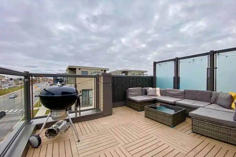 Great location! New stacked condo townhome, move-in ready. Stunning 1+1 bedroom unit with a bright open-concept living/dining area and 9′ ceilings. Large rooftop patio with a window overlooking the courtyard. TTC at door, one stop to Yorkdale Mall, 4-minute walk to the subway, 15 minutes to downtown Toronto, 25 minutes to York University. Big windows in the bedroom with a sitting area and sliding-door closet. Laminate floors and staircase, upgrades main-floor tiles. Looking for AAA tenant.