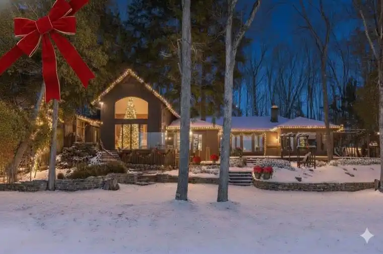 The Ultimate Lakefront Lifestyle in the Haliburton Highlands – Experience year-round luxury in this elegant 4-bedroom, 4-bathroom executive lake house, perfectly situated in the Haliburton Highlands. This home is located on a rare, level lot with sandy lake frontage on the scenic Kashagawigamog five-lake chain, which allows you to boat directly into Haliburton and other various points of interest. Enjoy sought-after western exposure for spectacular, all-season sunsets. The home is an unbeatable blend of modern executive living and timeless charm, upon entry through a custom antique wood door, you’re greeted by a breathtaking wall of windows that frame the unobstructed waterfront view. The open-concept living space features a cozy stone wood-burning fireplace, sitting area and breakfast nook with walkout to lakeside decking. The gourmet kitchen is a chef’s dream, featuring $100K in high-end Thermador stainless steel appliances, including a wine fridge, an oversized sit-up center island, and dual deep sinks the open concept dining room has a cathedral ceiling and a walkout to the glass-paneled lakeside deck. The luxurious main-floor master bedroom is a private haven, offering a walkout to a lakeside deck, a massive walk-in closet, and a stunning 5-piece ensuite with a soaker tub, & glass shower with seat. A second main-floor bedroom with a 3-piece ensuite providing convenience, while two spacious upper-level bedrooms and 5 piece bathroom ensure comfort for family and guests. The flexibility to purchase the adjacent separately deeded waterfront vacant ($449,900) lot to build a completely separate dwelling would make for an ideal family compound . Seize the opportunity to own this extraordinary property, offering luxury, charm, privacy, and nature’s beauty in a prime Highlands location all with having the unique advantage of being within walking distance to town, the hospital, medical center, and all local amenities.