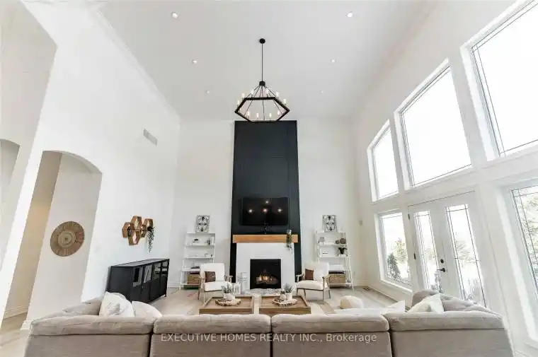 Exquisite Design & Serene Privacy Step into this breathtaking 4,000 sq ft modern Scandinavian retreat, perfectly blending minimalist elegance with warm, natural elements. Set on over an acre of lush, private land, this home offers soaring over 18-ft ceilings, expansive bay windows, and uninterrupted views of a tranquil country-inspired yard. Chefs Dream Kitchen features dual waterfall-edge islands, a built-in induction cooktop, and a commercial-grade refrigerator. Designed for both entertaining and everyday living, the space is flooded with natural light. The main-level primary bedroom is a sanctuary with a cozy fireplace, a spa-like ensuite, and a private walkout to a covered porch with a hot tub perfect for relaxation. Enjoy outdoor dining with a handcrafted stone pizza oven just steps away. Nearly 3,000 sq ft of unfinished basement with a separate entrance offers limitless potential ideal for a guest suites, home theater, gym, or additional living space.