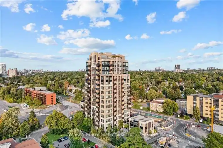Discover a sanctuary of sophistication high above vibrant Westboro. This exquisite approximately 1,200 sq ft + Balcony residence offers a privileged perspective, featuring breathtaking, unobstructed panoramas of the Ottawa River, Gatineau Hills, and the downtown Ottawa skyline.Designed for both gracious living and entertaining, the open-concept layout is bathed in natural light from two exposures and hardwood throughout. The well-appointed kitchen boasts granite countertops and premium stainless steel appliances, while the expansive balcony provides a perfect setting for al fresco dining against a stunning backdrop.The generous master suite is a true retreat, complete with a walk-in closet, a spacious ensuite bathroom, and captivating river views, including summer fireworks displays. A second large bedroom, an additional den ideal for a home office, and a second full ample space for all needs.This exceptional residence includes in-suite laundry, an underground parking space, and a storage locker. Residents enjoy exclusive access to premier building amenities, including a state-of-the-art fitness center, a versatile party room, and incredible rooftop terraces. Walking distance to future LRT, walking and bike trails, top rated schools, Westboro village, Carlingwood mall and more! Location, Lifestyle, Luxury all here at 75 Cleary ave suite 1202! All utilities included condo fees except hydro. ** No Roommates, No smoking, no pets above 15lbs. Completed rental application, full credit score, and proof of income requirement.**