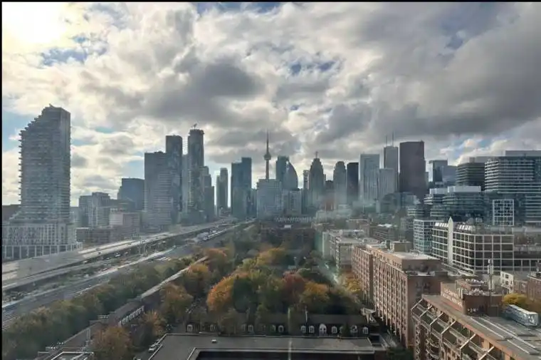 Welcome to this brand new, sun-filled, spacious 1+DEM at Goode by Graywood WITH UNOBSTRUCTED VIEW & Panoramic view of CN tower, lake, toronto downtown skyline in primary bedroom &LIVING RM . 9 ft ceiling, floor to ceiling window. Gourmet family size kitchen with quartz counter& backsplash, high end European S/S B/I appliances, laminate flr through out. Window covering will be installed. 5 star amenity include: Lobby lounge fireplace, biker repair station, pet spa, conceirge, outdoor terrace, maker’s lounge, gaming area, landscaped garden, work stations, reading nook, sun deck, party rm, gym, bbq area, yoga studio, outdoor swimming pool, outdoor sating/work spaces, quiet lounge and co-working area. Step outside into the cobblestone charm of the Distillery District, filled with boutique shops, acclaimed restaurants, art galleries, and year-round cultural events. Stroll to St. Lawrence Market, Corktown, or take in lakeside trails, all within minutes. TTC streetcar service is at your doorstep, with easy access to Union Station, the DVP, and Gardiner Expressway, and the future Ontario Line subway station now under construction will further elevate the areas exceptional connectivity.