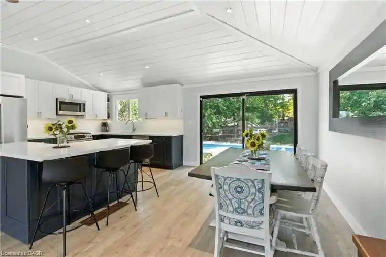 Welcome to 19 Wallace Place, this 3+1 bedroom home sits on a quiet court and has been extensively renovated to combine style, comfort, and functionality. The interior features bright, open-concept living with vaulted ceilings, updated vinyl flooring, and a custom kitchen with 2022 appliances. Large patio doors lead to a fully fenced and private backyard with a saltwater inground pool. The lower level includes a spacious recreation room, fourth bedroom, bathroom, and mudroom/laundry area with a separate entrance and a garage door featuring a built-in pedestrian door, offering potential for an in-law suite. Additional structures on the property include a bunkie and a shed, which could be converted for additional use. The property offers strong curb appeal, ample parking, and a convenient location close to parks, schools, shopping, and the Grand River.