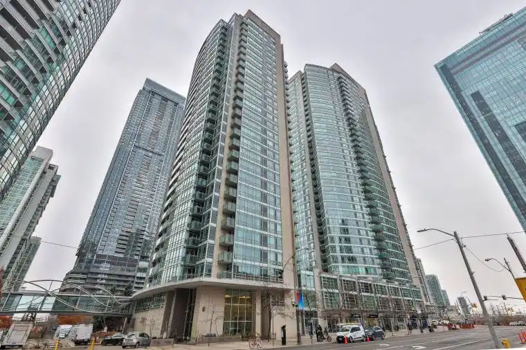 Welcome to this spectacular high-floor corner suite in the heart of downtown Toronto. Framed by floor-to-ceiling windows, the home offers sweeping city views and a thoughtfully designed layout with 2 bedrooms, and 2 4-pc bathrooms, and corner balcony. The open-concept kitchen is bright, with white cabinetry, new stainless range, refrigerator and over the range microwave, functional layout with generous storage, while the large den provides the perfect flexible space for work or study. This owner occupied residence includes 1 owned parking spot and 1 locker, and grants access to an impressive collection of amenities: 24-hour concierge, state of the art fitness center currently being updated, indoor pool with hot tub, sauna, multi sport court for basketball, badminton or volleyball, cinema, billiards room, party room, rooftop garden with BBQ terrace, hair salon, guest suites and visitor parking. With all utilities and even cable TV included in the maintenance fees, this is a true turnkey opportunity. Steps to shops and restaurants, The Well, public transit, CN Tower, Rogers Centre and Scotiabank Arena, Financial and Entertainment Districts, and Harbourfront, this address embodies the best of sophisticated urban living.