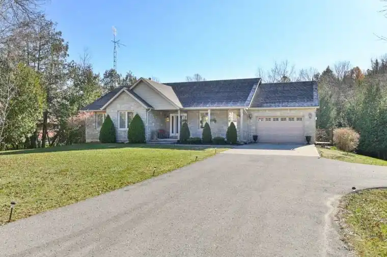 Seeking an immaculate 1780+ sq ft 3 bedroom, 3 bath bungalow on a 1.75 acre peaceful, and private rural lot? Look no further. From the curb this beautiful property says welcome home. Designed for family function and entertaining alike, inside and out. Vaulted ceilings through the living room, dining and kitchen enhance the aesthetic. Living room with hardwood floors and large window. Oversized kitchen is open to dining area, showcasing an abundance of cabinetry, counter space for food prep, double sinks, breakfast bar and wine nook. Retreat to the adjoining sunroom room anytime of the year. Elevated 23’x12′ deck gives full reign for the grill master with plenty of space to relax and enjoy south facing views. Primary bedroom features hardwood flooring, vaulted ceiling, 2 closets, private 3pc ensuite. 2 additional bedrooms with hardwood flooring, a 4pc bath, a 2 pc bath and laundry all on the main level. Partially finished lower level awaits your creativity for final touches (potential for future in-law suite). Walk out to covered patio. Bonus workshop with its own separate entrance. A peaceful retreat in your future back yard with a picturesque footbridge framing a meandering creek to revel in. Fire pit for s’mores. Plenty of room for family to run and play. Bonus 13’6″ x 20’6″ outbuilding can easily accommodate a vehicle, and 15′ x 11’6″ additional storage for all the toys! Centrally located between Trenton and Brighton with easy access to Hwy 401. Pride of ownership throughout.