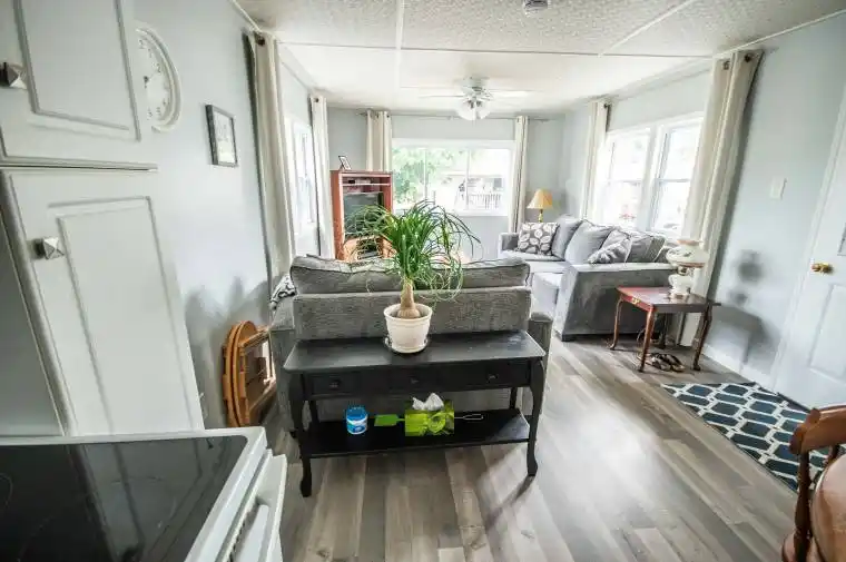 Fantastic country-like locale in Keene, minutes to Peterborough and all amenities. Situated in a lovely, quiet and friendly park. This is an opportunity to live your life in a low maintenance, relaxed and affordable environment and in a park-like setting! This wonderful open concept home is ready for you to move right in! Pride of ownership is evident in this clean and updated abode. Newer laminate throughout, newer white kitchen! Generous Primary bedroom with a walk in closet! Spacious family/sunroom room with sliding doors to the porch could be easily used as a second bedroom! Large bathroom with ensuite laundry! Breezy front porch for those relaxed summer afternoons/ evenings.Single car parking. Dry storage access under the unit. Monthly fees include: lot rent, (currently 843.67) water & sewer, taxes, and park maintenance. Don’t wait, this wonderful lifestyle awaits your arrival! (Can be sold furnished)