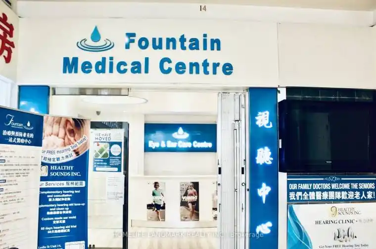 Located In Famous “Richlane Mall” Just Beside Prestigious “Bayview Hill”. This Mall Features Different Medical Clinics ,Pharmacy, Beauty Salon And A Few Different Restaurants. Previous Optometry Area Internally Open To Medical Clinic Having Family Doctors.It Is An Idea Place for Medical Related Business. It Is just Beside Family Doctors And Pharmacy Will Have Stable Guest Flow!! This Mall Jus Renovated ! Close To HWY 404.You Must See!!