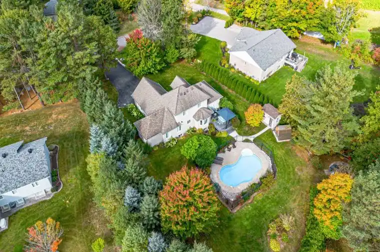 EXPERIENCE A SHOWSTOPPING ESCAPE WHERE MODERN ELEGANCE MEETS RESORT-STYLE LIVING – HEATED POOL, SAUNA, & CHEF’S KITCHEN! Tucked away on a peaceful crescent just 7 minutes from Midland and Penetanguishene, this showstopping home offers resort-style living with easy access to hiking trails, golf courses, beaches, marinas, and the shimmering shores of Georgian Bay. Set on a private 0.91-acre lot, the striking stucco and stone exterior is paired with beautifully landscaped grounds and a tree-lined backdrop that elevates the curb appeal. An oversized driveway and 2-car garage accommodate 10+ vehicles, while a fully insulated shop with bay door access and hydro adds bonus workspace. Entertain with ease in the backyard oasis featuring a heated inground pool, an inground fire pit, a composite deck with a pergola, a 6-person jacuzzi, a sauna, and a pool house with its own washroom and washing station. Inside, the grand entry boasts 18′ cathedral ceilings, sleek tile flooring, and a stainless steel and glass staircase, and flows into a bright and airy living space with 10′ coffered ceilings, ambient halo lighting, and a cozy gas fireplace. The gourmet kitchen is a chef’s dream with a Sub-Zero fridge/freezer, built-in dual ovens and gas range, heated floors, and a butler-style pantry with marble-inspired finishes, while the dining area features a bay window and walkout to the deck. The main floor also hosts a luxurious primary retreat with 10′ coffered ceilings, a walk-in dressing room, and a 5-piece ensuite with a soaker tub and heated floors. Upstairs offers two private bedrooms and a 4-piece bath, while the finished lower level adds a guest bedroom, a 3-piece bath with heated floors, and a rec room with a gas fireplace, a sleek bar with dual fridges, and a stainless steel bartop. An extraordinary opportunity to embrace refined living in a one-of-a-kind #HomeToStay, where every detail has been thoughtfully curated for comfort, beauty, and timeless elegance.