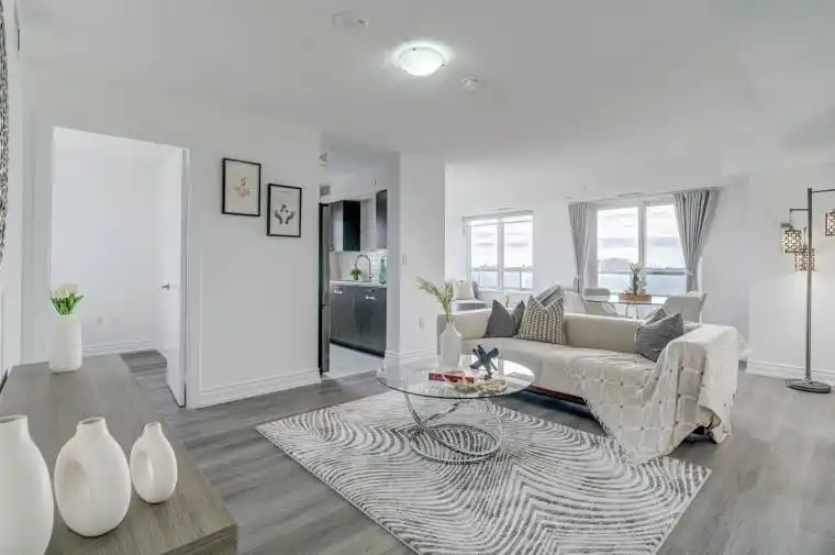 *Rare 2 Bedroom Plus Den, 2 Bathroom Corner Suite*. One Of Only Four Units On The Coveted Park-Side Of The Building Featuring An Expansive Wrap-Around Balcony! 882 Sqft Of Exquisite Living Space. Enjoy Panoramic, Unobstructed Views Of The City Skyline, Ravine, Trail And Even The CN Tower. This Tastefully Updated Residence Showcases Brand New Vinyl Flooring (2025), Freshly Painted With New Baseboards (2025), And Updated Kitchen & Washroom Countertops (2025). The Modern Kitchen Is Equipped With A New Stainless Steel Stove And Dishwasher (2025). The Bright, Open-Concept Living And Dining Area Flows Seamlessly Onto The Wrap-Around Balcony, Creating The Ideal Indoor-Outdoor Space For Relaxing Or Entertaining. The Spacious Primary Bedroom Includes a 4 Pc Ensuite, A Secondary Bedroom With Large Windows, While The Versatile Den-Filled With Natural Light-Can Be Easily Transformed Into A Third Bedroom Or Dedicated Home Office, Offering Exceptional Flexibility. Steps to TTC and 5 minutes To GO Station Easy Access To Downtown Union Station. An Owned Underground Parking Spot Next To Elevators Provides Ease Of Access. Residents Enjoy A Well-Managed Building With Top-Tier Amenities, Including A Fitness Centre, Party Room, 24/7 Concierge, And Visitor Parking. Ideally Located Steps From Transit, Shopping, Restaurants, Schools, Highway 401 And Expansive Green Space. A Special Place Your Guests Won’t Stop Talking About, This Is The One You’ve Been Waiting For!