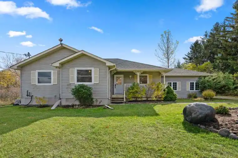 Nestled in the delightful lakeside village of Gores Landing, this nice property presents a rare opportunity to own an attractive 3-bedroom country bungalow. Located in the picturesque Rice Lake area, this home is sited on a sprawling, nicely landscaped 1.2-acre lot, offering a tranquil retreat from the bustle of everyday life. Step inside to discover a well-appointed kitchen. The spacious living room invites you around a charming propane fireplace that adds both ambiance and comfort. The bright dining area is a perfect space for family gatherings, and seamlessly extends through a sliding door onto a deck overlooking the private rear garden, perfect for outdoor entertaining or simply enjoying quiet moments surrounded by nature. On the lower level, a generous recreation room awaits, offering additional space for family fun, hobbies, or a home office setup. This space is designed to cater to diverse lifestyle needs, ensuring everyone in the family has a place to enjoy. The offering also features a 1.5-car attached garage and the expansive lot offers plenty of space for outdoor activities and gardening. Whether you’re looking to escape the city’s high speed lifestyle for a serene life in a lakeside community or seeking a charming family home, this bungalow is a must-see.