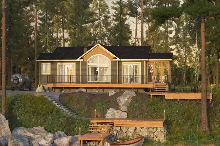 The Bala LE is the perfect vacation home or family cottage, thoughtfully designed to make the most of every square inch. A gallery-style kitchen flows seamlessly into the open-concept dining and living areas, creating a bright, inviting space ideal for entertaining or relaxing. Three comfortable bedrooms and two full baths provide plenty of room for family and guests. Cathedral ceilings with rich wooden beams and panel details capture the charm of a classic cottage, while modern finishes bring it firmly into the present.