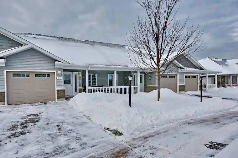 Welcome to this bright and beautifully maintained 1260 sq. ft. bungalow townhouse in a highly sought-after adult-only land lease community. Close to the Arena, Library, restaurants, shopping and banks. This one-floor layout offers true ease of living, with a west-facing back patio that enjoys warm afternoon sun and no homes directly behind for added privacy and serenity.Step inside to an inviting open-concept floor plan featuring vaulted ceilings and an upgraded kitchen with stainless steel appliances and a large pantry for excellent storage. The living room is warm and welcoming with a gas fireplace, making it the perfect place to relax or entertain.The spacious primary bedroom includes both a walk-in closet and a second full closet, along with a 3-piece ensuite bath complete with a walk-in shower. A second 4-piece bathroom and a full laundry room add everyday convenience. The second bedroom is larger than in older comparable units, offering great versatility for guests or a home office.Outdoor spaces include a covered front porch and a sunny rear patio. The large single-car garage provides inside entry, and visitor parking is conveniently located across the street. A generous crawl space houses the furnace and hot water heater while offering exceptional additional storage.This bungalow townhouse delivers comfortable, low-maintenance living in a vibrant adult community-ideal for those seeking peace, convenience, and a welcoming lifestyle.