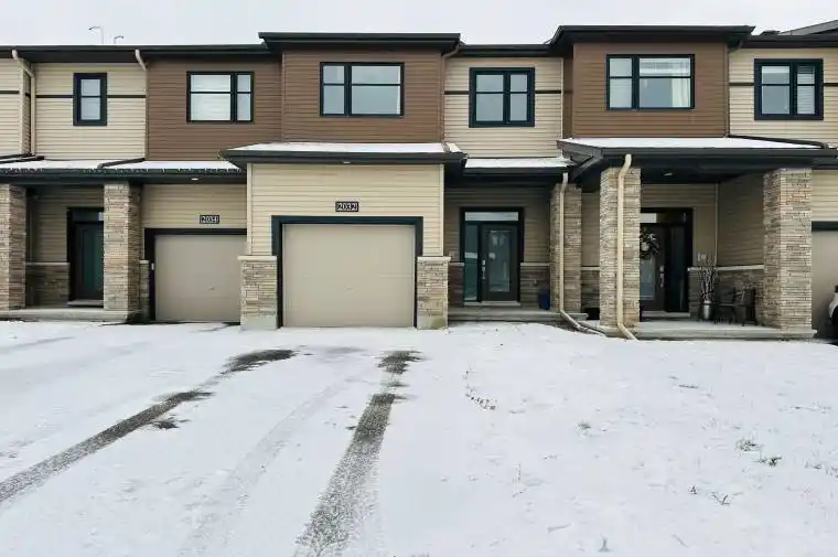 Welcome to 2032 CALTRA CRES, a stunning 3-bedroom, 2.5-bath townhome in the lovely, family-friendly Half Moon Bay Community. The main level welcomes you with a bright foyer, 9-foot ceilings, and an open-concept living/dining area. The kitchen features stainless steel appliances, a classic tile backsplash, a breakfast bar, upgraded cabinetry, and a convenient pantry. Smooth ceilings and updated dining lighting enhance the space. Hardwood flooring flows throughout the main areas, while carpeting adds comfort to the primary bedroom and the high-traffic second-floor hallway. Upstairs, the spacious primary suite comfortably accommodates a king-size bed and includes a large walk-in closet and a bright ensuite with a modern glass shower. Two additional generously sized bedrooms and a full bath complete this level. The lower level offers a multi-purpose space-perfect for your growing family! Prime location near schools, trails, parks, Costco, and Barrhaven Marketplace. Easy access to amenities and the highway. Move-in ready!
