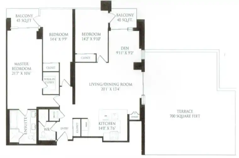 Welcome to the 400 Adelaide penthouse collection, this stunning condo that feels more like a home, with 9 foot ceilings featuring crown moulding and a lavish 700 sqft. Outdoor Terrace! Discover the allure of Ivory On Adelaide, Old Town Toronto’s hidden gem! This stunning penthouse boasts over 2,100 square feet of luxurious interior and exterior space, featuring an exclusive, massive south-facing terrace and two additional spacious balconies that wrap around the property. Bask in the sunlight that floods your beautiful eat-in kitchen, complete with sleek quartz countertops, abundant storage, and stainless steel appliances all over looking a large living and dining area with breathtaking views of the lake. The extraordinary primary bedroom is a true retreat, featuring a walk-in closet, access to a private balcony, and a lavish ensuite bathroom equipped with double sinks, heated floors, a separate jacuzzi tub and shower perfect for unwinding after a long day! The second and third bedrooms are generously sized, ideal for a queen bed, a large office, or a cozy nursery, and each boasts walkouts to the balcony and double closets. An additional 3-piece bathroom conveniently located off the hallway adds to the home’s functionality.This remarkable property also includes a prime parking spot, an oversized locker, and two bike storage spaces. With low maintenance fees covering water, this penthouse is not just a home; it’s a lifestyle waiting to be embraced! Freshly painted, just waiting for you to move in. Walking Distance To Restaurants, TTC, Scotiabank Arena, Union Station, Financial District, Distillery District, St. Lawrence Market, East End Film Studios. Prime location to access major highways DVP & Gardiner. Soon to be new Ontario Line.