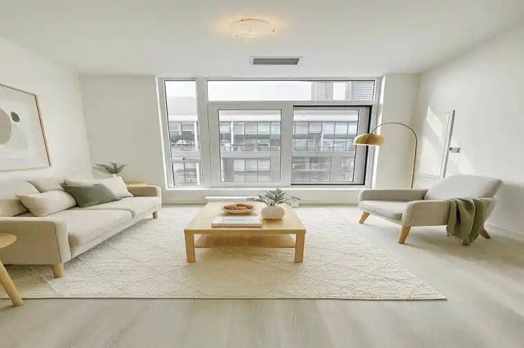 Live steps from Sugar Beach in this well-planned 1 bed & 1 bath at EQH. The suite opens into a bright, open-concept living and dining area. West-facing exposure fills the unit with abundant natural light throughout the day, while an open and spacious balcony offers a partial lake view-ideal for relaxing or entertaining. The modern kitchen features European-style flat-panel cabinetry, under-cabinet lighting, soft close hardware, composite stone countertops and backsplash, along with an integrated appliance package including a built-in refrigerator with bottom freezer, smooth cooktop, convection oven, panelled dishwasher, and microwave hood fan. The spacious bedroom is thoughtfully laid out for comfort and functionality. A large laundry room with ample storage adds rare practicality, and window blinds will be installed for added convenience. Residents enjoy access to premium amenities including 24/7 concierge and security, a fitness centre, yoga studio, co-working spaces, a boardroom, and a shared rooftop terrace with BBQ. Perfectly located in Toronto’s south core, just minutes from the waterfront, lakefront trails, St. Lawrence Market, transit, dining, and quick highway access.