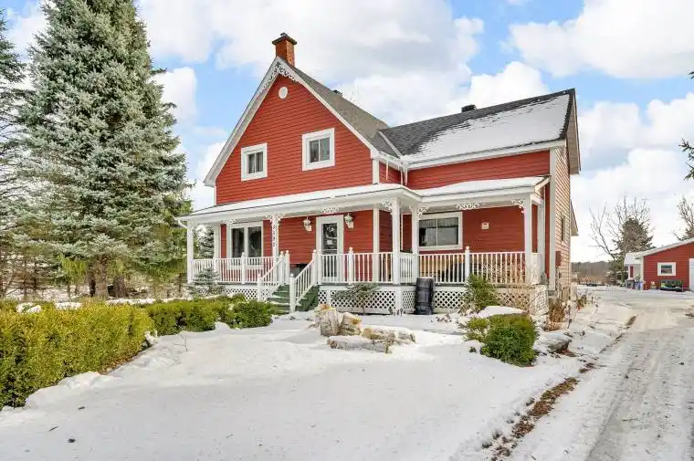 A truly rare offering just minutes from the city limits, this picturesque 34-acre property blends open fields and mature woodland, creating the ideal setting for a hobby farm, homestead, or peaceful country retreat. Rich in character and surrounded by natural beauty, the charming century home offers over 1,600 square feet of inviting living space, where timeless details meet everyday comfort. Inside, you’ll find two exceptionally spacious bedrooms and two full bathrooms, including a beautiful bath featuring a soaker claw-foot tub, perfect for unwinding after a long day. The formal dining room, highlighted by elegant French doors, sets the tone for cozy family dinners and memorable gatherings, while the home’s warmth and charm are felt throughout. Eat-in country kitchen and a cozy living room finish off the main floor. Outdoors, the property continues to impress with a 28′ x 32′ heated workshop warmed by a woodstove, I ideal for projects, storage, or small-scale farming needs. A 10′ x 14′ insulated bunkie adds flexibility for guests, a studio, or a private retreat. Enjoy peaceful mornings and sunset views from the wraparound porch, overlooking beautifully landscaped perennial gardens, a serene pond, and a truly unique water fountain that adds to the property’s tranquil atmosphere. Recent updates include newer siding, shingles, gas furnace and the home is serviced by Cornwall Electric which offers both rural charm and modern convenience. This is a one-of-a-kind property where space, privacy, and possibility come together, an exceptional opportunity to embrace country living without sacrificing proximity to the city.