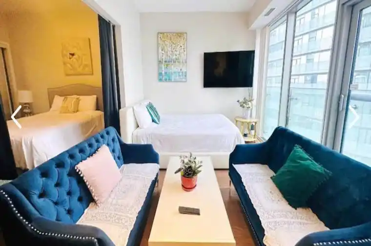 Fully furnished Suite, 1+ Den. Hardwood floor throughout. just carry your bag and move in! Waterfront Community ICE Condo with PATH System Connection . Approx. 595Sq. Ft. Condo Apt. 9′ Ceiling, Gorgeous Lake View. Den Can Be used as A Second Bedroom Easily WITH PRIVACY (curtains provided). Upgraded Hardwood Floors Throughout. Direct underground access to Financial Corridor, Union Station, Maple Leaf Square. Longo Grocery Store, L.C.B.O. & Hotel. 24 Hr Concierge.Parking is extra $200 per month.