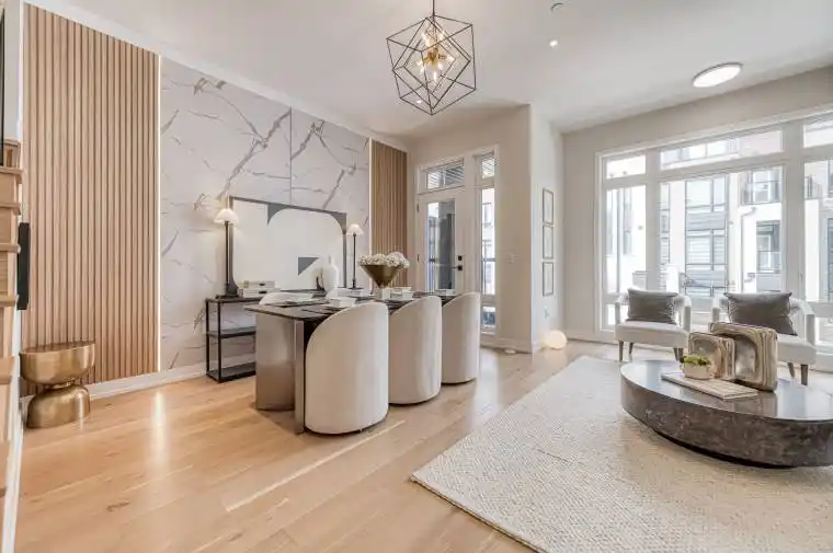 Welcome to this brand new townhouse. This stunning double car garage residence offers refined living across three thoughtfully designed levels. Step inside and you’ll be greeted by White Oak hardwood flooring that flows seamlessly throughout the home, complemented by a solid wood staircase with elegant wrought iron spindles. Smooth ceilings and pot lights throughout. 4 bedrooms and 4 bathrooms upgraded with quartz countertops.The ground-floor bedroom includes a 3-piece ensuite perfect for in-laws, visitors, home office or rental potential. The second floor showcases an expansive open-concept living space with 10-foot ceiling.The family room features a floor-to-ceiling electric fireplace, living room boasts a custom-designed modern media wall with built-in ambient lighting and walkout access to balcony. The fully upgraded kitchen is a showstopper highlighted by handleless, soft-close cabinetry in stylish modern tones, ceiling-height cabinets with display shelves and accent lighting, a designer backsplash, and an oversized quartz waterfall island that doubles as a breakfast bar. From the kitchen, step out onto a spacious terrace ideal for outdoor dining, summer lounging, or entertaining under the stars. Upstairs, the third floor offers a serene retreat with 9-foot ceiling. The primary bedroom with French door, bedside pendant lights, and a 5-piece ensuite featuring electric heated floor. 2nd bedroom features walk-out balcony, perfect for quiet mornings or evening relaxation. Rooftop terrace with BBQ Gas Hookup. Whether hosting friends, enjoying sunset views, this rooftop terrace offers the ultimate outdoor living. Combining thoughtful upgrades, luxurious finishes, and a coveted location close to top-rated Richmond Hill High School, Lake Wilcox, Highway 404, GO Train Station, Richmond Green Park, Costco and the Oak Ridges Community Centre. Don’t miss the opportunity to make it yours.