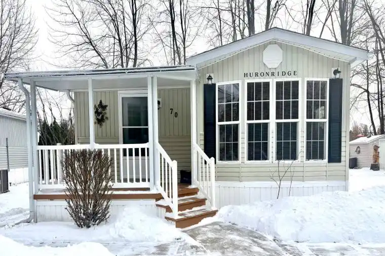 Welcome to 70 Topaz! Your year round retreat in the highly sought-after Country Life Resort in beautiful Wasaga Beach. This charming, move-in ready home offers an affordable way to enjoy resort-style living with current fees of approximately $623 per month, covering taxes, maintenance and access to amenities including five pools (one indoor for year-round use), a splash pad, beach area, playground with jumping pillow, mini-golf, stocked fishing ponds, a community hall for owners to use for private events and a summer calendar of scheduled activities. A convenient walking path also leads to the pristine sands of Wasaga Beach, making lake days effortlessly accessible. Inside, the home is bright, clean, and completely carpet-free, making maintenance refreshingly simple. The functional layout features a spacious bedroom, a 4 piece bathroom, a kitchen with ample cabinet space and lots of storage space in closets and the crawlspace. A high-efficiency furnace and heat pump, both just two years old, provide modern comfort and energy efficiency year-round. The private backyard features a large deck with gas BBQ hookups, a patio and no neighbors behind! This home is truly turnkey, a fantastic opportunity to own a low-maintenance home in a prime Wasaga Beach location, Just move in and enjoy!