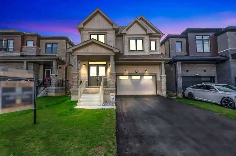 Stunning Rosebery, Detached, 2,307 Sq. Ft. Home in Avalon. Welcome to this beautifully designed 4-bedroom, 2.5-bath home in the highly sought-after Avalon community in Caledonia. Blending style and functionality, this gem features an upgraded kitchen with elegant cabinetry and stainless steel appliances. The main floor offers a bright and open layout with 9-ft ceilings, hardwood flooring throughout, and both a great room and living room for versatile living. A modern hardwood staircase leads to the upper level, enhanced by zebra blinds throughout the home. Convenience is built in with a second-floor laundry area. Upstairs, four spacious bedrooms provide comfort and privacy, including a luxurious primary suite with a walk-in closet and spa-like ensuite. Perfectly located near the Grand River, this home is just minutes from Hwy 403, Hamilton Airport, Amazon warehouse, shopping, schools, and scenic trails making everyday life easy and connected.