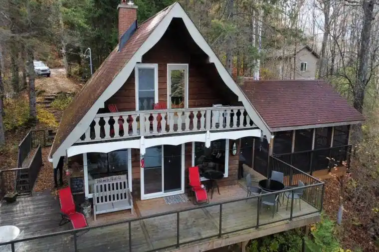 Welcome to this lovely 4-season chalet on spectacular Miskwabi Lake! Large lot with 190 feet of waterfront with clean rock and sand shoreline, and incredible big-lake view. Almost an acre of land, well-treed for great privacy. Nice level area at the waterfront and deep water off the dock – perfect for swimming and boating. Enjoy summer sunsets from the dock. Open-concept main floor features custom kitchen with granite countertops and island, and picture windows framing the awesome lake views. Walkout to large wraparound deck – and new 18′ x 18′ 3-season screened porch/sunroom with retractable window system – outdoor entertaining at its finest! Main floor has one bedroom and 4-piece bath. Upstairs there are two more bedrooms, including main bedroom facing the lake with its own private balcony. Downstairs there is a cozy rec room with walk out, wood stove, and lower floor laundry. Heated water line with UV system. Plus there’s a newer 32′ x 16′ garage, with separate storage room – great for office space, games room or workshop. Easy access by year-round Municipal road – Broken Paddle is a quiet dead-end road with only 10 cottages. Just 20 minutes to Haliburton village for shopping and services. Miskwabi Lake is part of a 2-lake chain with Long Lake – located at the top of the watershed for exceptional water quality. Enjoy miles of boating, water sports and lake trout fishing on this desirable lake system.
