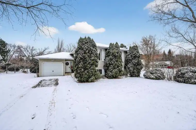 Well maintained, raised bungalow in a quiet part of Old Town Niagara-on-the-Lake. Sitting on a treed 50 X 212 foot lot, this home has had the same owner since 1990. The foyer has direct access to the backyard and also to the garage and the split staircase which leads to the upper and lower levels. The upper level, features an open concept living dining kitchen space with vaulted ceiling, and views to the back yard, along with access to the raised deck. There are three bedrooms and a family bathroom. The lower level features a good sized family/recreation room with gas fireplace, and a two piece washroom with room to add a shower. There is a furnace room with laundry facilities, and a partially finished room currently used as a home office that could be an additional bedroom. The home benefits from a new furnace and a/c (2025), central vacuum, stainless kitchen appliances and some newer windows. This home offers great value in this location.