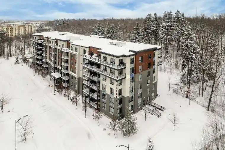 Quiet top-floor living, rooftop views, and stargazing at night on your private balcony, this condo offers an elevated lifestyle. Welcome to 609-304 Essa Rd at The Gallery Condos, a bright and beautifully maintained top-floor suite offering space, privacy, and effortless living in a central Barrie location. This modern 2 bedroom, 1 bathroom condo spans over 1,000 sq ft and is filled with natural light thanks to oversized windows and a thoughtfully designed open concept layout.The kitchen, dining, and living areas flow seamlessly and provide room for a long harvest table or a separate at-home office area, making it ideal for entertaining or work-from-home life. Oversized bedrooms, large closets, and excellent storage add to the functionality of the space. With only one neighbouring unit and no one above, this is the quiet and peaceful home you have been searching for, paired with the conveniences of condo living.Step outside to your penthouse balcony, perfect for outdoor dining, relaxing under the stars, or enjoying views of trees and the city. Residents also enjoy access to a stunning rooftop terrace with panoramic views across Barrie, a truly special place to unwind.Built in 2018, this condo features in-suite laundry, air conditioning, elevator access, visitor parking, and two owned parking spaces, a rare and valuable bonus. Condo fees include water, building insurance, and snow removal, meaning no more shovelling for you.Pet lovers will appreciate that the building allows two pets per unit with no size restrictions.Conveniently located close to grocery stores, restaurants, hotels, RONA, trails, Barrie’s waterfront, downtown, Highway 400, and the Barrie Allandale GO Station, this is an ideal option for commuters, professionals, downsizers, couples, or small families. Modern, spacious, and move-in ready, this top-floor condo delivers comfort, convenience, and lifestyle in one exceptional offering. Take a look today!