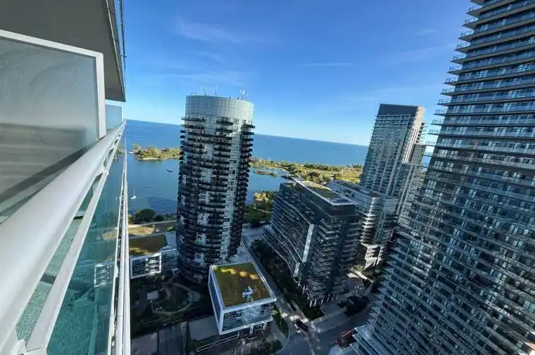 Waterfront Upper Floor Condo at Nautilus by Monarch | 2 Bed, 2 Bath | 2 Balconies | Lake & Sunset Views | 1 Parking spot | 1 Locker room | Den suitable as office | 3 Minutes walking distance to the Lake | Motivated Seller! | Del Property Management | Prime Humber Bay Shores Location | Approx. 904 Sq Ft Interior + 200+ Sq Ft Outdoor Living. Experience luxury waterfront living in South Etobicoke’s sought-after Nautilus at Waterview by Monarch. This beautifully designed 2-bedroom, 2-bathroom upper-floor suite features floor-to-ceiling windows, 9-ft ceilings, and southwest views of Lake Ontario and breathtaking sunsets. Enjoy over 200 sq ft of outdoor space across two private balconies with three walkouts from the living room and both bedrooms perfect for entertaining or relaxing by the water. Building Amenities:24-hour concierge & security, Indoor pool, gym & sauna, Rooftop terrace with lake views, Game room, Party room, guest suites & visitor parking, more Location Perks: * Clear Lake view, Steps to lakefront trails, parks, marinas* Walk to local Rabba supermarket, shops, cafes, restaurants* Easy access to TTC, Gardiner Expressway and upcoming GO Station* Minutes to Downtown Toronto, High Park & Sherway Gardens *For Additional Property Details Click The Brochure Icon Below*