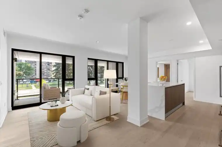 Suite 208 at Residences on Keewatin Park presents an intelligently designed three-bedroom home offering generous space and refined finishes in a boutique Midtown setting. With 1,360 sq. ft. of interior living area and a 156 sq. ft. balcony, this suite delivers exceptional livability with a highly functional layout ideal for modern lifestyles. The bright living and dining spaces feature engineered hardwood flooring throughout and open onto the balcony, creating a natural extension of the living area. The sleek Scavolini kitchen, complete with Miele appliances, anchors the home with clean lines, European craftsmanship, and everyday practicality. The primary bedroom offers excellent separation, featuring a large walk-in closet, oversized window, and a spacious ensuite. Two additional bedrooms are well proportioned, each with its own window and closet, making the suite equally suitable for families, professionals, or those seeking flexible work-from-home space. With two full washrooms and thoughtful storage throughout, the home balances comfort and efficiency. Set within an intimate boutique building steps from transit, parks, and local amenities, Suite208 offers a rare opportunity to enjoy understated luxury and convenience in one of Midtown Toronto’s most desirable neighbourhoods.