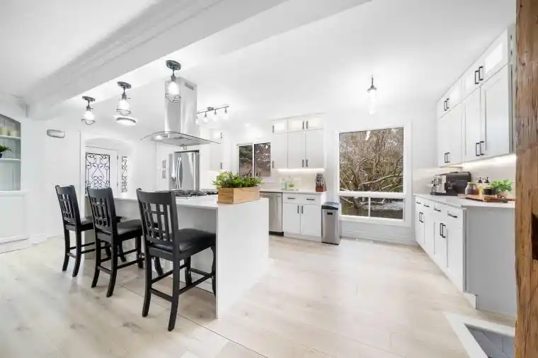 This beautifully updated home sits on a stunning 75 x 202 treed lot, backing onto peaceful greenspace in a sought-after Alcona neighbourhood. A standout feature is the bright, above ground, self-contained 1-bedroom apartment with its own entrance, kitchen, laundry, and hydro; ideal for extra income or in-laws. The main living space offers a BRAND NEW designer kitchen, open-concept living, three spacious bedrooms and a spa-like semi-ensuite bathroom with a custom 2-person shower and corner soaker tub. Also appreciate the basement flex-space completely separate from the apartment, offering an extra 500sqft for your personal use. Enjoy the professionally landscaped yard, Arctic Ocean Legend swim spa with 60 jets, impressive barn with hydro ideal for a workshop, storage, or hobby space, and a generator backup system – providing peace of mind year-round. Located just a short walk to local shops, parks, and Innisfil Beach Park, and with easy access to Hwy 400, this property combines lifestyle and convenience in one perfect package.