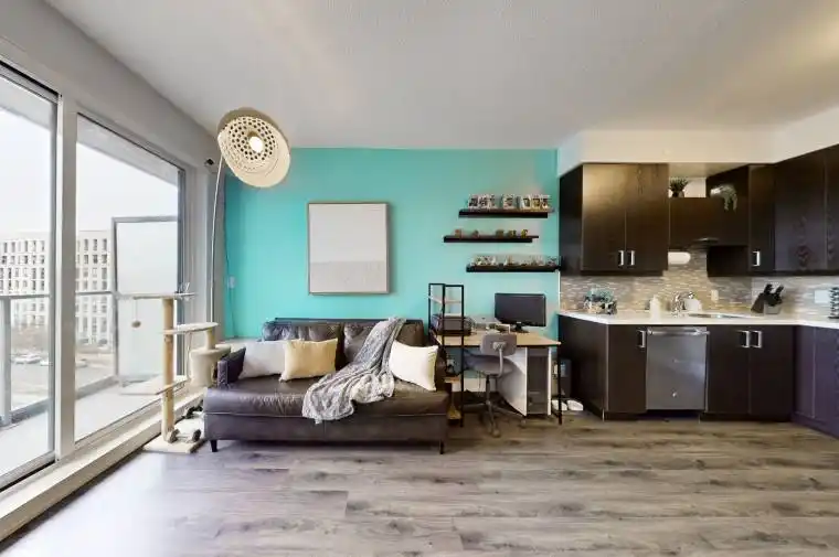 Introducing Riverwalk Condos by Times Group, perfectly situated in the heart of Unionville, Markham. This large 1-bedroom suite offers 711 sq ft of thoughtfully designed living space plus a 40 ft north-facing balcony with serene views.The functional open-concept layout features a spacious living room that easily fits a full-sized sofa and entertainment unit, with a walkout to the expansive balcony. The modern kitchen boasts sleek cabinetry, quartz countertops, and family-sized stainless steel appliances, ideal for everyday cooking or entertaining. The open dining area provides versatile space that can also serve as a home office or den, accommodating your lifestyle needs.The primary bedroom is bright and generously sized, offering a double-door closet and a large window with north exposure. A modern 4-piece bath completes the home with style and comfort.Enjoy first-class building amenities including 24-hour concierge, fitness centre, indoor pool, party room, games room, and more. Conveniently located steps from grocery stores, restaurants, and shops, with YRT transit at your doorstep and quick access to Hwy 404. Within top-ranking school zones – Unionville High School and James Robinson P.S.Perfect for young professionals, downsizers, or investors seeking modern condo living in Unionville’s most desirable location.