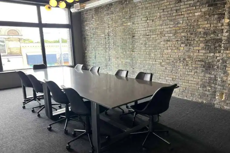 Modern second floor 3,000 sqft office space available in a well-maintained building with prime downtown exposure. Features include 11 large offices with built-in desks, glass partitions, exposed brick accents, high ceilings, and windows that provide natural light. This office space was completely renovated in 2022 with upgraded finishes throughout. This space would be ideal for professional services, creative businesses, or firms seeking a strong downtown presence. Parking spots available for a fee.