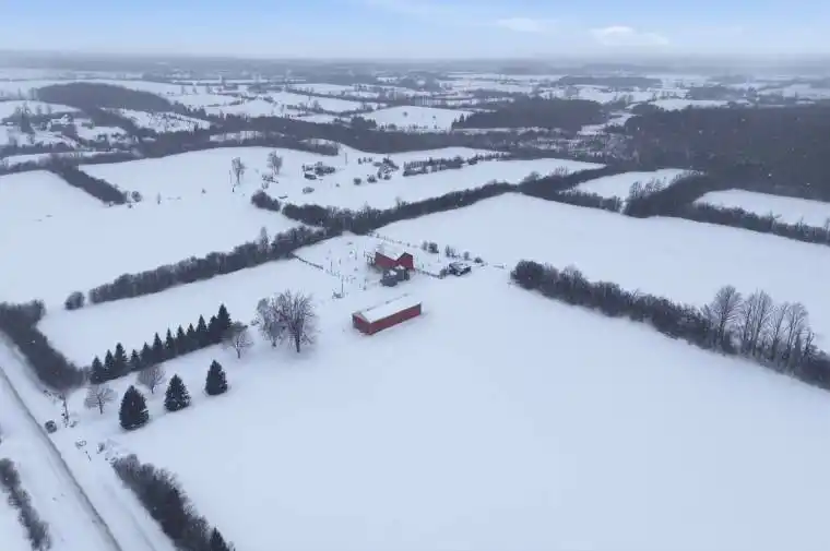 Located between Cannington and Manilla in close proximity to Simcoe St – approximately 97 total acres with approximately 65 workable acres (including building envelopes) of Otonabee Loam soil with some randomly tile drained; Circa +/-1900 farmhouse with addition built in 1973; 3 bedroom 1 bath home; updates to home include metal roof (2021), vinyl thermal windows (2022) siding (2022) , forced air propane furnace (2025); Hot Water Tank (2025); Metal clad 32′ x 80′ drive shed w/metal roof, earthen floor; +/-30′ x 60′ metal clad bank barn with west addition – covered open housing; electrical / water to bank barn & electrical to drive shed; 2 – metal grain bins on site;