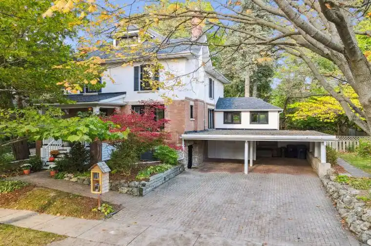 A RARE OPPORTUNITY IN DESIRABLE OLD UNIVERSITY! Located in one of Guelph’s most sought-after areas, you’ll find a true gem at 8 Crawford St. This 2801sq ft, 2.5 storey home has had numerous updates over the past few years that blend modern charm and classic features. Inside the grand foyer you’ll find a beautiful chestnut staircase with a convenient coat closet. The main level has all new hardwood flooring providing a wonderful flow throughout. The large living room, featuring a classic wood burning fireplace offers tons of natural light through the entire space. Enjoy family dinners in the dining room with beautiful bay window, offering easy access to both the kitchen and living room areas. At the back of the home you’ll find a large kitchen with new appliances and backsplash, as well as ample counter and cabinet space. The kitchen includes sliders that lead you out onto a massive backyard for family gatherings. The main level also features a 2pc powder room and laundry. On the other side of the kitchen is an addition that offers space for an office, playroom or TV room. Upstairs, the 2nd floor has 4 spacious bedrooms as well as a 4pc bathroom and 5pc ensuite (renovated 2024), a rarity in an older home. And if that’s not enough space, the 3rd floor offers a 5th bedroom and office space and that were re-insulated in 2024! The unfinished basement is high and dry with storage space with workshop. There is additional access here from the 2 car carport. One of the main selling features of this home is the beautiful, large private yard with new deck and pergola (2024), which offers an urban retreat you won’t find often in these older neighbourhoods. You can even make your own maple syrup by tapping the many mature trees. Additionally, many new windows replaced in 2024, new front steps/carpet 2024, furnace 2025. 8 Crawford is within walking distance to the UofG, downtown Guelph, many trails, amenities and within the desired John McCrae elementary school catchment!