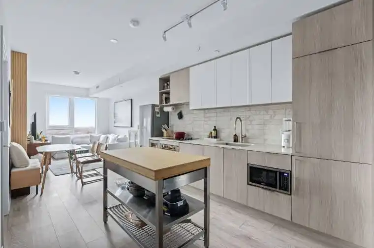 Welcome to The Forest Hill Condos, a stylish, well-located rental in one of Toronto’s most sought-after neighbourhoods. This beautifully customised two-bedroom, two-bathroom suite offers smart upgrades throughout, including a custom coffee bar with additional storage, a built-in wine fridge, a fluted feature wall, and sleek designer finishes. The kitchen features a built-in fridge-freezer and a secondary standalone stainless-steel fridge-freezer, offering exceptional storage and convenience. Enjoy south-facing skyline views from your private balcony, with clear sightlines to the CN Tower. The unit includes parking and a locker, and Bell Fibre internet is included for added convenience. Direct subway access from the lobby to the new Forest Hill LRT station puts the city at your doorstep, while Starbucks and Dollarama on the ground floor make everyday errands easy. The building is just over a year old and offers premium amenities, including a 24-hour concierge, fitness centre, yoga studio, rooftop terrace with BBQs, party lounge, and guest suites.Steps to parks, schools, shops, and dining, this is a thoughtfully upgraded rental that delivers comfort, convenience, and standout views in a prime location.