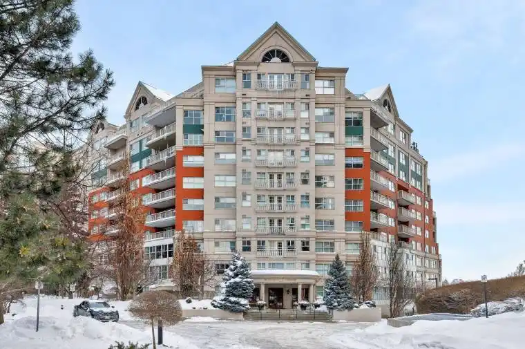 Welcome to The Courtyards of Concorde Place, a private, luxury enclave in the heart of Don Mills. This sun-filled corner 2 bedroom + den, 2 bathroom suite offers approximately 1,550 sq. ft. and is tucked away in a quiet corridor with only six suites. Enjoy the rare convenience of same-level parking with step-in access-no elevator required. The spacious kitchen and dining area overlook a serene ravine, while the living room features a gas fireplace and walkout to a balcony with gas BBQ hookup. French doors open to a versatile den/home office. The primary bedroom accommodates a king-size bed and includes two closets and a 4-piece ensuite; the second bedroom offers a double closet. New engineered hardwood flooring throughout-no carpet. Personal in suite alarm system. Outstanding resort-style amenities include a saline pool and whirlpool, fitness centre, 24-hour concierge, guest suite, rooftop terrace, tennis court, and fenced dog run, bike storage, garden plots available, library, billiard room, private garden area with fish pond. Steps to Shops at Don Mills, TTC at the door with express service downtown. Parking: #1-52 (same level) | Locker: UC Level #66 |Pet-Friendly Building. Welcome Home!
