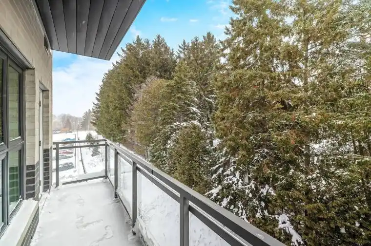 Welcome to 1201 Lackner Place, Unit 407, Kitchener…Located in the Lackner Ridge community in east Kitchener. The “Rosemount” model, a bright 1 Bedroom + Den condo, with 1 bathroom and 740 sq ft of modern living. With added privacy being situated at the end of the hall, on the top floor of this newer low-rise building. Premium views, privacy & southern exposure from the over-sized balcony that faces mature trees, perfect for relaxing or entertaining! Enjoy an open-concept layout, spacious den/multi-purpose room, upgraded kitchen with quartz counters/ceramic backsplash, stainless steel appliances and a breakfast counter, in-suite laundry, walk in closet in the bedroom, and a full 4pc bathroom. The building offers secure entry, a party room with kitchenette, bicycle storage, playgrounds, beautifully landscaped grounds and an owned parking space and locker. Conveniently located steps from schools, parks, sports centre, trails, shopping, restaurants, transit & highways. Close to Chicopee Ski & Summer Resort, Bingemans Amusement Park, Kitchener Auditorium & airport. Ideal for first-time buyers, professionals, or investors seeking a low-maintenance, stylish lifestyle in Kitchener’s sought-after Lackner Woods neighborhood.