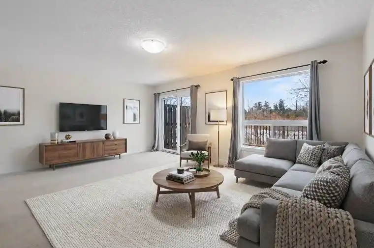 Welcome to this executive townhouse backing onto protected conservation land with two tranquil ponds and breathtaking views. Enjoy nature at its finest from your private deck, where ducks, birds, deer, and other wildlife are frequent visitors. The main floor features a spacious foyer leading into an open-concept great room filled with natural light. The eat-in kitchen offers ceramic tile flooring and a walkout to the deck, creating a perfect space for entertaining or relaxing while taking in the scenery. A convenient 2-piece powder room completes the main level. Upstairs, you’ll find three generously sized bedrooms, a full 4-piece bathroom, and upper-level laundry. The large primary bedroom includes a walk-in closet and a private ensuite with a ceramic tub. This well-maintained complex appeals to professionals, families, and retirees alike-an ideal opportunity for newcomers to Guelph or commuters seeking refined, low- maintenance living.