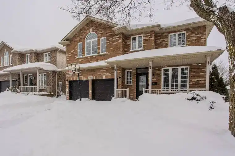 Welcome to a beautifully finished family home in the heart of the sought-after Brant Hills community, offering an impressive 3,147 sq ft of total living space designed to grow with you. From the moment you arrive, the all-brick exterior, double driveway, and large covered front porch create warm curb appeal that instantly feels like home. Inside, the main level is both functional and inviting-perfect for busy family life and entertaining alike. A formal dining room showcases hardwood floors, a tray ceiling, and large windows that flood the space with natural light. The spacious eat-in kitchen is the heart of the home, featuring custom wood cabinetry, tile backsplash, stainless steel appliances, a peninsula with breakfast bar, and a bright eating area with walkout to the backyard. The adjacent living room offers a cozy gathering space with a gas fireplace, large window, and elegant tray ceiling, while a convenient powder room completes this level. Upstairs, retreat to the expansive primary suite highlighted by a stunning oversized arched window, dual closets (including a walk-in), and a spa-inspired 5-piece ensuite with dual sinks, a soaker tub, and walk-in shower. Three additional well-sized bedrooms, a full main bath, and same-level laundry make everyday routines seamless for families. The fully finished lower level-completely renovated in 2025-adds incredible versatility with a spacious recreation room complete with a bar, a modern 3-piece bathroom with walk-in shower, and an additional bedroom ideal for guests, teens, or a home office. Out back, enjoy a fully fenced yard with an interlock patio, shed, and plenty of green space for kids and pets to play. Set in a family-friendly neighbourhood close to parks, schools, and everyday amenities, this is a home where memories are made.