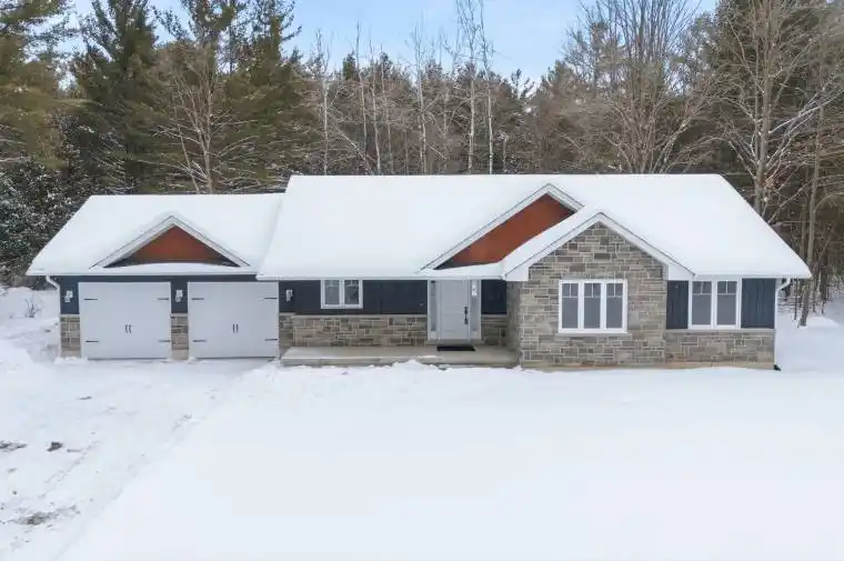Here’s the country home you’ve been waiting for! Tucked among the trees on a beautiful 2-acre lot, this custom-built ranch bungalow is move-in ready with 3 immaculate bedrooms and 2 bathrooms. A welcoming covered front porch opens to a bright foyer and an open-concept main living area with cathedral ceilings and views of the private backyard. The spacious dining area has sliding doors leading to a large deck, perfect for entertaining. The gorgeous kitchen features a center island and large pantry. The main floor also includes a laundry/mudroom with direct access to the attached double garage. The primary suite offers a walk-in closet and a 3-piece ensuite with a tiled walk-in shower. Two additional generously sized bedrooms and a main 4-piece bath complete the level. The lower level offers endless possibilities-create a rec room, extra bedrooms, or even add a third bathroom with the existing rough-in. The level lot is lined with trees for ultimate privacy, and the location is just minutes from the villages of Madoc and Tweed for amenities. With gas heating, central air, and a standby automatic generator, this 2021-built home is a charming gem priced to sell quickly!