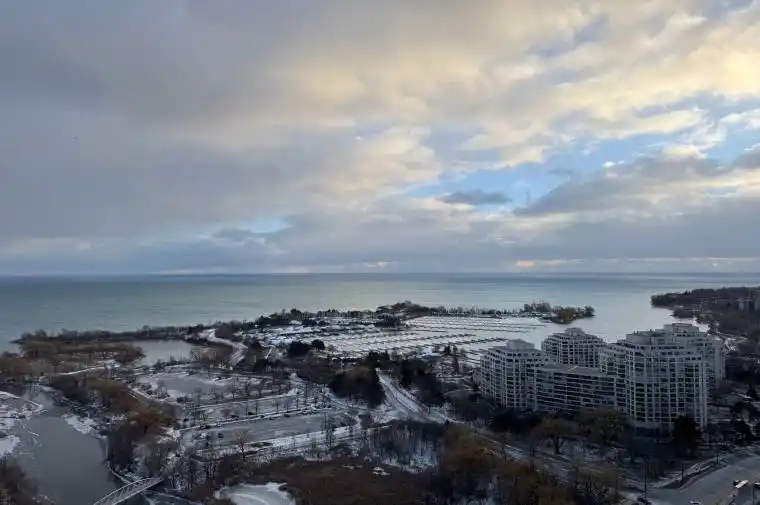 This spacious 1-bed, 1-bath suite on the 33rd floor of the sought-after Westlake Condos offers breathtaking South/West views of Lake Ontario and the Marina. Featuring 532 sq. ft. of living space, plus a private balcony, the unit boasts modern finishes including 9′ ceilings, floor-to-ceiling windows, laminate flooring, and a stylish open-concept kitchen with quartz countertops and stainless steel appliances.Enjoy direct indoor access to premium amenities, including a 30,000 sq. ft. fitness center, indoor pool, yoga studio, squash courts, party room, library, rooftop gardens, BBQ terrace, and more. Plus, stay cozy during winter with access to Metro, Shoppers, and other retail shops-no need to step outside!The location is ideal, just steps to Humber Bay Park, trails, and the waterfront, with easy access to downtown Toronto, TTC, Gardiner Expressway, QEW, and Hwy 427.The spacious primary bedroom includes a walk-in closet, and the unit comes with 1 parking spot and 1 storage locker. A perfect home for professionals, investors, or anyone seeking an elevated urban lakeside lifestyle.