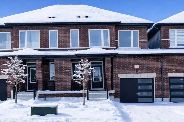 Welcome to 28 Autumn Drive in the Villas of Upper Wasaga, built by Baycliffe Communities, located in the highly sought-after Wasaga Sands neighbourhood. This never-lived-in, move-in-ready freehold townhome offers modern comfort, low-maintenance living, and easy access to everything Wasaga Beach has to offer. This beautifully finished Amber Model features 1,734 sq. ft. of thoughtfully designed living space, making it ideal for full-time living, a weekend escape, or a smart investment. The bright main level showcases 9-foot ceilings, wide-plank engineered hardwood flooring, and a solid oak staircase with elegant wrought-iron spindles, creating a clean, contemporary feel throughout. The upgraded kitchen is designed for both everyday living and entertaining, featuring quartz countertops, soft-close shaker cabinetry with glass uppers, and an oversized island that anchors the open-concept layout. The space flows effortlessly into the dining and living areas, filled with natural light. Upstairs, the primary suite offers a walk-in closet and a private 4-piece ensuite with double sinks and a tiled shower. Two additional bedrooms, a full bathroom, and convenient upper-level laundry complete the second floor. The unfinished basement provides excellent storage or future finishing potential. Tarion warranty included. Ideally located close to schools, shopping, trails, and the world’s longest freshwater beach, with Collingwood just 15 minutes away and Blue Mountain only 20 minutes, this home delivers the perfect balance of comfort, convenience, and lifestyle in one of Ontario’s most desirable beach towns.