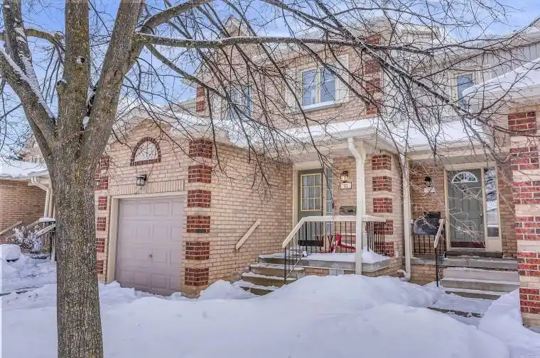 Prime Location Townhouse! Discover the perfect blend of convenience and character in this spacious townhouse, Situated directly on the bus line and just moments from the University of Guelph and Stone Road Mall, this home offers an unbeatable location for students, investors, or first-time buyers. Step inside to a layout that truly stands out. The main floor features durable laminate flooring and a striking spiral staircase that acts as a central focal point. Elegant French doors separate the foyer from the living room, creating a cozy atmosphere highlighted by a charming corner fireplace. The spacious kitchen comes equipped with a dishwasher and flows naturally toward a 2-piece powder room and a walk-out to your own private patio. Upstairs, you will find three spacious bedrooms, including a primary suite with ensuite privileges and ample closet space. The fully finished basement expands your living space significantly, featuring a large recreation room, a 3-piece bathroom, laundry facilities, and a versatile den that serves perfectly as a home office or spare bedroom. Complete with a forced air gas furnace, a single attached garage, and a private driveway, this home checks every box. With one of the best layouts in the complex, this opportunity won’t last long.