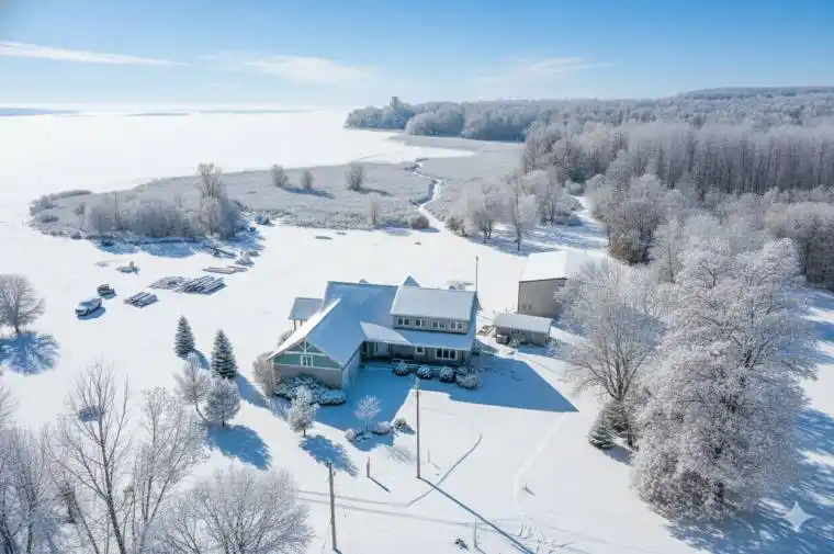Welcome to your dream home on the shores of Hay Bay! This custom-built two-story masterpiece, constructed in 2012, blends luxury, comfort, and scenic beauty. Set on a 1.72-acre lot with 202 ft of waterfront, it offers unparalleled living. As you arrive, a double wide paved driveway leads to an attached 2-car garage and a distinctive detached 40′ x 58′ garage, complete with hydro and oversized doors (12’x14′ & 12’x12′), ideal for boats, RVs, or a workshop. Inside, the main level impresses with 28 ft high cathedral ceilings adorned with BC Fir wood beams. Expansive windows illuminate interiors and offer picturesque views of the landscaped backyard and sparkling waters. This level includes a cozy living room with a gas fireplace, an office/den, and a gourmet kitchen with granite countertops, oak cabinetry, and a breakfast bar. The dining room and easy deck access enhance indoor-outdoor living, as well as entrances from the laundry room, and connections to the garage. Two spacious bedrooms, one with deck access, plus a 3 pc and a 4 pc bath, complete this level. Ascend the beautiful wooden staircase to discover the private sanctuary of the Primary suite. Here, you’ll find a spacious bedroom complemented by two walk-in closets and a 4 pc ensuite, providing the ultimate retreat. The finished lower level enhances the home’s entertainment and storage capabilities. The rec room features a wet bar, 2 pc bath, cold cellar, substantial storage room, and a utility room. Additionally, a semi-finished bedroom with walk-out offers flexibility for your needs. The outdoor space is nothing short of spectacular, with meticulously designed flower gardens and a 10’x24′ floating dock invites you to embrace the waterfront lifestyle. Located just minutes from downtown Napanee, this home provides the perfect combination of convenient access to amenities and the privacy and tranquility of waterfront living.