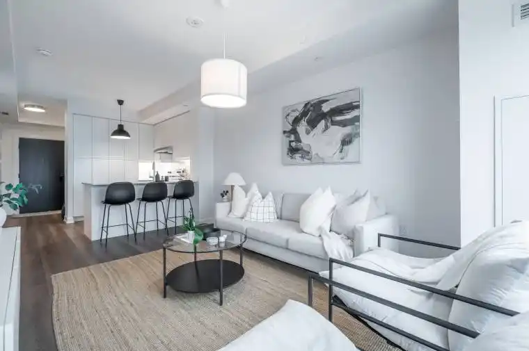 Unlock turn-key living at the Upper West Side Condos by Branthaven! This beautifully maintained 695 sq ft one-bedroom + den, one-bathroom suite on the fourth floor is truly one of a kind. Step inside to wide-plank flooring throughout, bright white walls in flawless condition, and a stunning kitchen featuring quartz countertops, subway tile backsplash, under-cabinet lighting, undermount sink, floor-to-ceiling cabinetry, seating for three at the peninsula, a dedicated coffee bar, and a fridge water line hook-up. The spacious living room boasts soaring ceilings, a builder-upgraded TV-ready package, and access to a private 50 sq ft south-facing balcony with serene views. The bedroom easily accommodates a queen bed with room to size up and offers an expansive closet with room for a dresser, plus a valued builder upgrade: ensuite access to the four-piece bathroom, complete with a large vanity, ample counter space, and pristine tilework. Additional highlights include in-suite laundry, an entry closet, geo-thermal heating and cooling, one storage locker, one underground parking space, and Bell internet included in the condo fees. Enjoy the convenience of keyless entry and the BH Home Technology system for a seamless living experience. Residents have access to top-tier amenities, including a concierge and security, fully equipped gym, pet wash and grooming station, media and party rooms, games rooms, rooftop deck and garden with BBQs, and ample visitor parking. Located in the heart of Joshua Meadows, you’re just a short drive to the Uptown Core for shopping, dining, and services, as well as nearby walking trails, golf, parks, and top-ranked schools. Commuting is effortless with quick access to highways 403, 407, and the QEW, making both work and play incredibly convenient.
