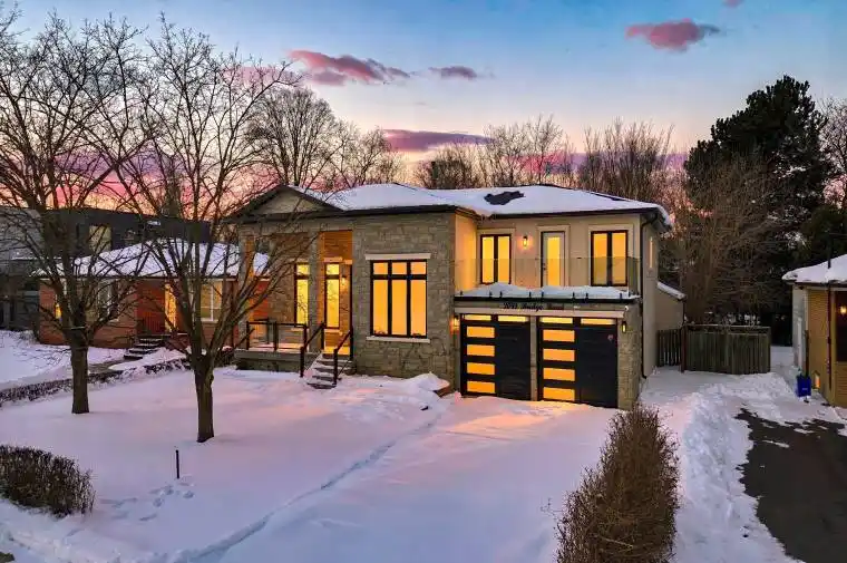 Welcome to an exceptional and spectacular home in the prestigious sought-after Bronte neighbourhood, where architectural elegance meets modern luxury. Soaring 14-foot ceilings on the main level create a striking sense of grandeur, complemented by expansive windows that flood the home with natural light. The thoughtfully designed main floor offers three spacious bedrooms and two full bathrooms, while the private primary retreat is elevated on a second-floor loft. The open-concept living, dining, and kitchen spaces are ideal for both everyday living and upscale entertaining. The designer kitchen features premium built-in JennAir appliances, crisp white cabinetry, quartz countertops, an oversized centre island, custom pantry storage, and a discreet computer niche. The primary suite is a true sanctuary, showcasing a spa-inspired 5-piece ensuite, a generous walk-in closet, and a rare walkout to a glass-enclosed balcony overlooking the front yard. A fully finished basement enhances the home’s versatility, offering two bedrooms, two full bathrooms, Stainless Steel Appliances, separate laundry, and a private entrance. Step outside to a beautifully extended family room leading to a large deck with sleek glass railings-perfect for refined outdoor entertaining. A well-insulated workshop/storage shed completes the backyard retreat. Ideally located near QE Community Park, top schools, Bronte Harbour, Bronte GO Station, and major highways.**Virtually Staged Pictures**