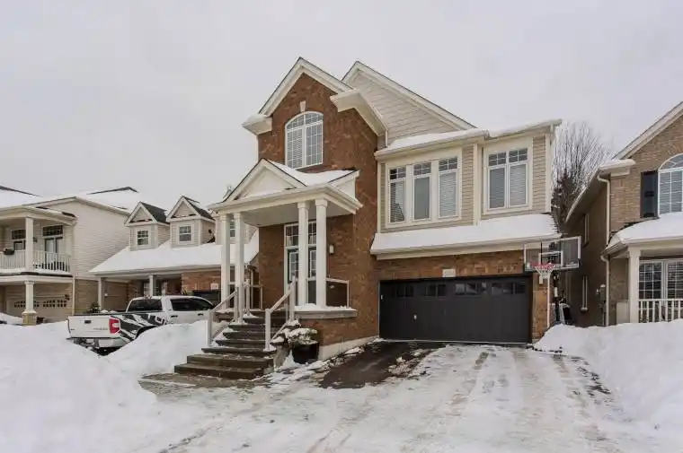 Welcome to this Mattamy-built Winterfield home, perfectly designed for families and set on a premium ravine lot offering privacy, space, and beautiful natural views. With 2,934sf of living space and upgrades throughout, this home blends function and lifestyle in a sought-after friendly neighbourhood. Just steps to schools, parks and everyday essentials, with easy access to the 407, GO Train, shopping and more-ideal for family life and commuters. Curb appeal welcomes you with stone steps leading to a warm, inviting entryway. Inside, hardwood flooring flows throughout the home. The spacious kitchen is the heart of the home, featuring ample custom cabinetry, stainless steel appliances, a large island with breakfast bar, and a sunny eating area with walkout to the back deck through an extra-wide glass door-perfect for family meals and entertaining. The open-concept living and dining area offers a beautiful bay window and tray ceiling, creating an airy, welcoming space for everyday living. The upper level is thoughtfully designed, featuring a stunning middle-level family room with vaulted ceiling, cozy stone-surround fireplace, and built-in shelving-perfect for movie nights and relaxing together. A dedicated home office area provides ideal work-from-home flexibility. The spacious primary retreat includes a 4-piece ensuite with soaker tub and walk-in shower, while three additional generously sized bedrooms and a 4-piece main bath provide plenty of room for a growing family. The finished lower level offers incredible versatility with laminate flooring, a separate garage entry, large rec room, stylish wet bar with beverage fridge, and an additional bedroom with its own 3-piece ensuite-ideal for guests, teens, or multi-generational living. Step outside to a fully fenced backyard oasis featuring an elevated composite deck, patio, green space for kids and pets to play, and peaceful ravine views-your own private escape in the city. A perfect place to grow, gather,and call home