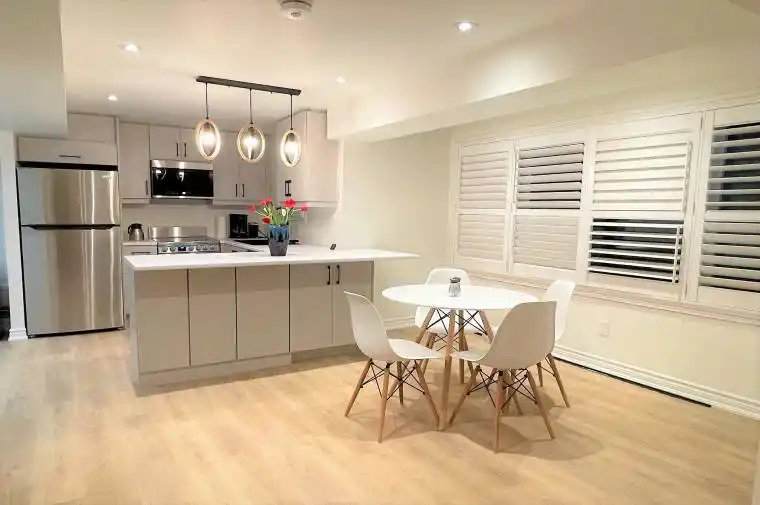 Absolutely Stunning and Charming Apartment Suite in Prestigious South Richvale Awaits! This recently renovated Sensational Sun-Filled Unit has been meticulously designed throughout by a Professional Designer with an ideal Functional Layout. Featuring a gorgeous Open Concept Modern Kitchen with Premium Counters & Breakfast Bar, Extended Cabinets, Backsplash, Full 5 Pc Suite Of Stainless Steel Appliances: Fridge, Stove, Microwave/Hood Fan Combo, & Dishwasher. Deep Sink with Faucet Glass Rinsers! Premium Laminate Floors, California Shutters, & Upgraded Pot Lights & Fixtures Thru-Out. Ensuite Laundry Combo with Convenient Built-In Shelving. Bedroom Retreat with French Doors and a Large Closet. Simply Move In and Enjoy! Fully Furnished includes: Mounted HD TV, Streaming Device, Sofa, Nesting Tables & More. Separate Entrance. Parking Included for 2 Cars! Don’t miss out on this Tremendous Opportunity! ** Legal Apartment with all City Permits & Approvals **